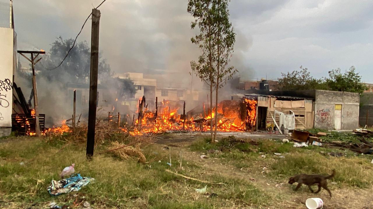 Morelia, Mich.- Lunes 20 de marzo de 2026.- Un incendio destruyó totalmente tres casas de madera en la colonia Ignacio López Rayón, aledaña a la colonia Margarita Maza de Juárez, en la zona poniente de Morelia, informaron autoridades policiales y de rescate, las cuales agregaron que únicamente hubo daños materiales.