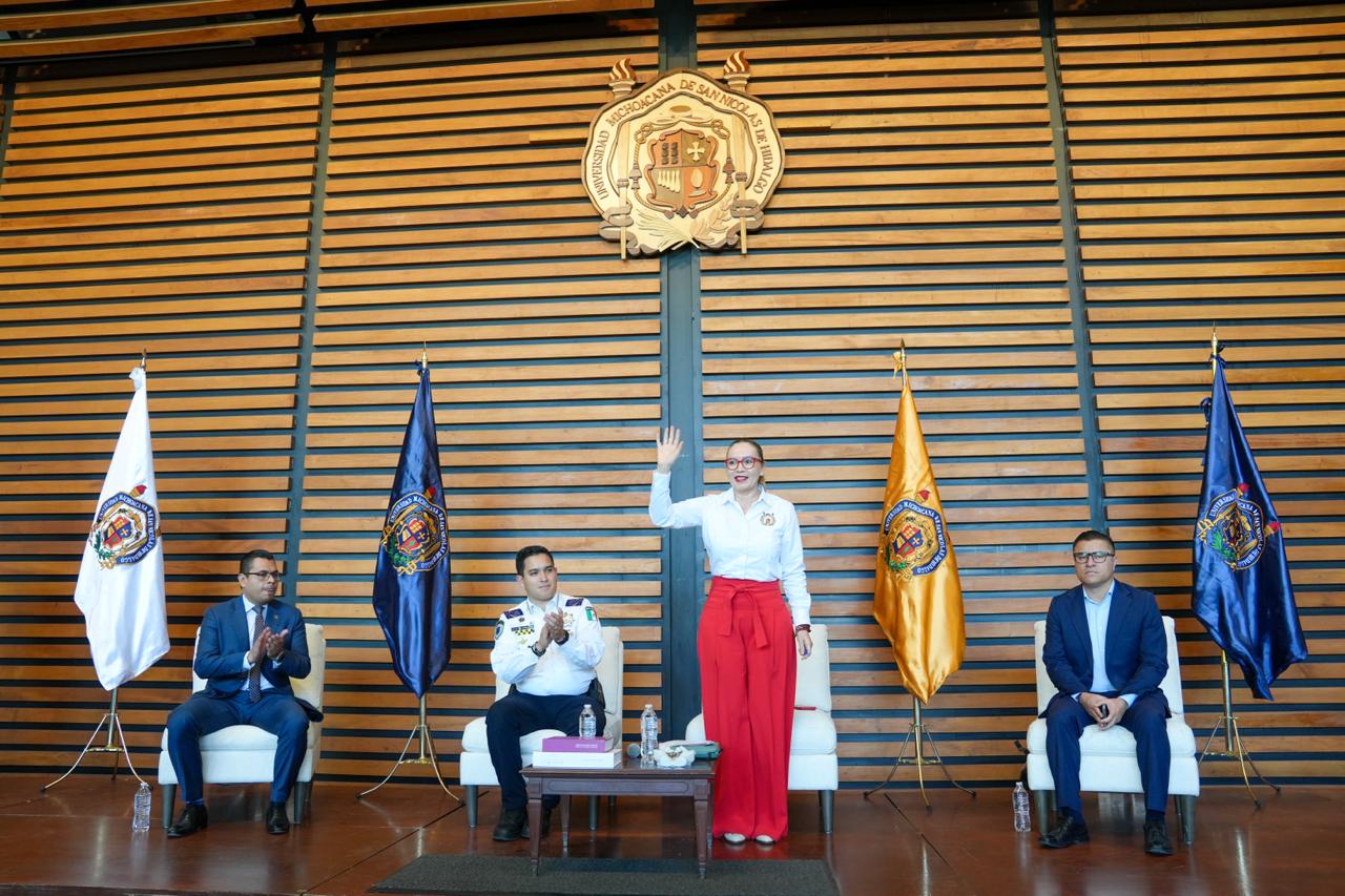De igual forma, la rectora Yarabí Ávila, destacó la presencia del secretario de Seguridad y Protección Ciudadana de Morelia, José Pablo Alarcón, quien dijo, motiva a las y alumnos, en este marco, agradeció el apoyo que la UMSNH ha tenido por parte de la dependencia municipal cuando se ha requerido, al tiempo que, solicitó seguir contando con su respaldo para que las y los jóvenes nicolaitas caminen tranquilos en las calles.