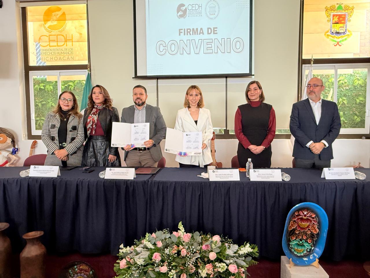 Al firmar un convenio de colaboración con el Tribunal en Materia Anticorrupción y Administrativa del Estado de Michoacán (TAAM), el ombudsperson, Josué Mejía, resaltó la importancia de este acto pues, señaló que “Los Derechos Humanos deben ser el eje rector del comportamiento, la ética y la moralidad de los servidores públicos”.